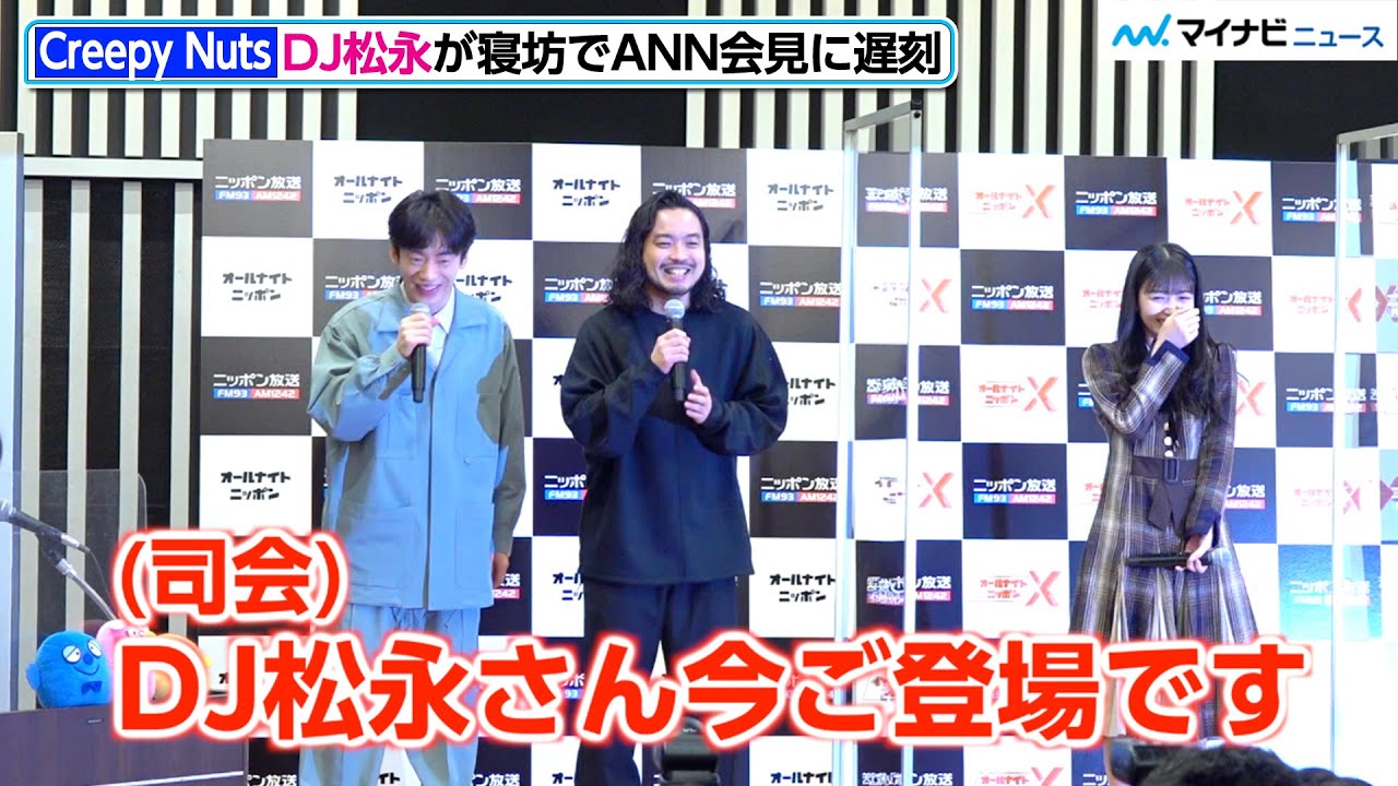 Creepy Nuts DJ松永、ANN会見に寝坊し謝罪 乃木坂46久保史緒里思わず爆笑 『オールナイトニッポン』『オールナイトニッポンX(クロス)』パーソナリティ発表記者会見(´ω`)【爆笑】 未分類 X Facebook はてブ Pocket LINE コピー 2022.04.11 Creepy Nuts DJ松永、ANN会見に寝坊し謝罪 乃木坂46久保史緒里思わず爆笑 『オールナイトニッポン』『オールナイトニッポンX(クロス)』パーソナリティ発表記者会見(´ω`)【爆笑】 Creepy Nuts DJ松永、ANN会見に寝坊し謝罪 乃木坂46久保史緒里思わず爆笑 『オールナイトニッポン』『オールナイトニッポンX(クロス)』パーソナリティ発表記者会見#CreepyNuts #DJ松永 #R指定音楽ユニットのCreepy Nuts(DJ松永、R-指定)が16日、都内のニッポン放送にて行われた「2022年度『オールナイトニッポン』『オールナイトニッポンX(クロス)』パーソナリティ発表記者会...